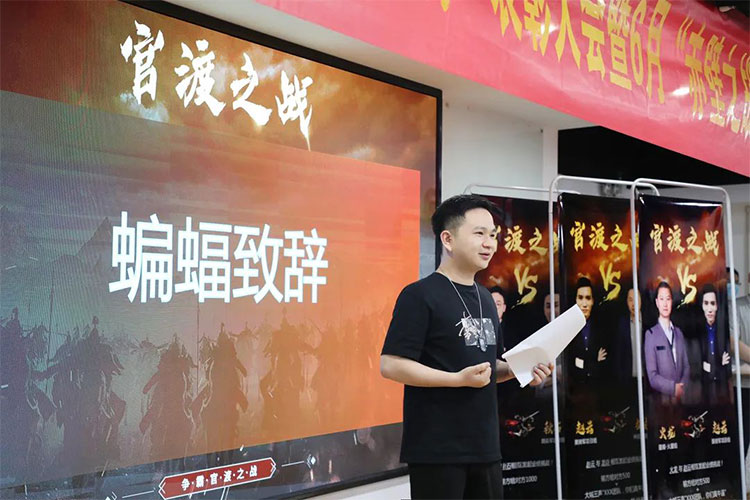 “從師徒制、到講武堂的規范落地,現階段火蝠pk賽的調整與部署,目標指向只有一個,那就是保質保量完成我們每個月的既定目標,沖刺即將到來的百團大戰。希望大家能夠全力以赴,不要停留在喊口號上,月底的時候兌現承諾。”